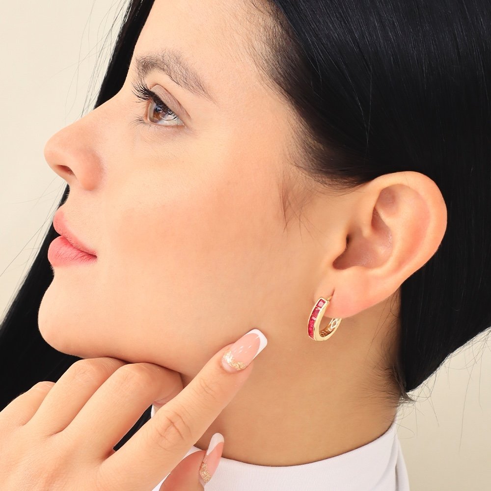 Their channel-set fuchsia zirconia stones glow with a rich, fiery brilliance—adding a modern, luxurious pop of color to any look. Perfect for those who love statement pieces that still feel effortlessly wearable.